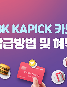 IBK KAPICK 카드 발급방법 및 혜택 카카오페이와 IBK은 콜라보로 IBK 카픽 카드를 출시했습니다. 이번 카픽카드는 신한, 하나카드에 이어 세 번째 시리즈입니다. 카픽 카드란 카카오페이가 픽(Pick)한 카드라는 의미로, 카카오페이에서 여러 카드사와 손잡고 만든 단독카드 시리즈입니다. 아래에서 바로 IBK 카픽 카드를 발급받으실 수 있습니다. IBK 카픽카드 신청하기 카픽카드 혜택 연회비: 국내전용 14,000원, 해외 겸용 15,000원 카픽카드는 카카오페이 포인트 혜택을 제공합니다. 실적 조건과 적립 한도 없이 국내외 가맹점에서 결제할 때마다 0.5% 카카오페이 포인트가 적립됩니다. 또한, 쇼핑, 카페 등 리빙 분야와, OTT, 쿠팡 와우멤버십, 네이버 멤버십 플러스 등 멤버십 분야에서도 각각..